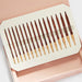 Set of 8 sizes (US 4, 6, 7, 8, 9, 10, 10.75 & 11) of Symfonie Rose Interchangeable Circular Needle Set is packed in an attractive rose pink foiled box.