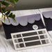 - The double point needles are packaged in a grey fabric case with scalloped edge.